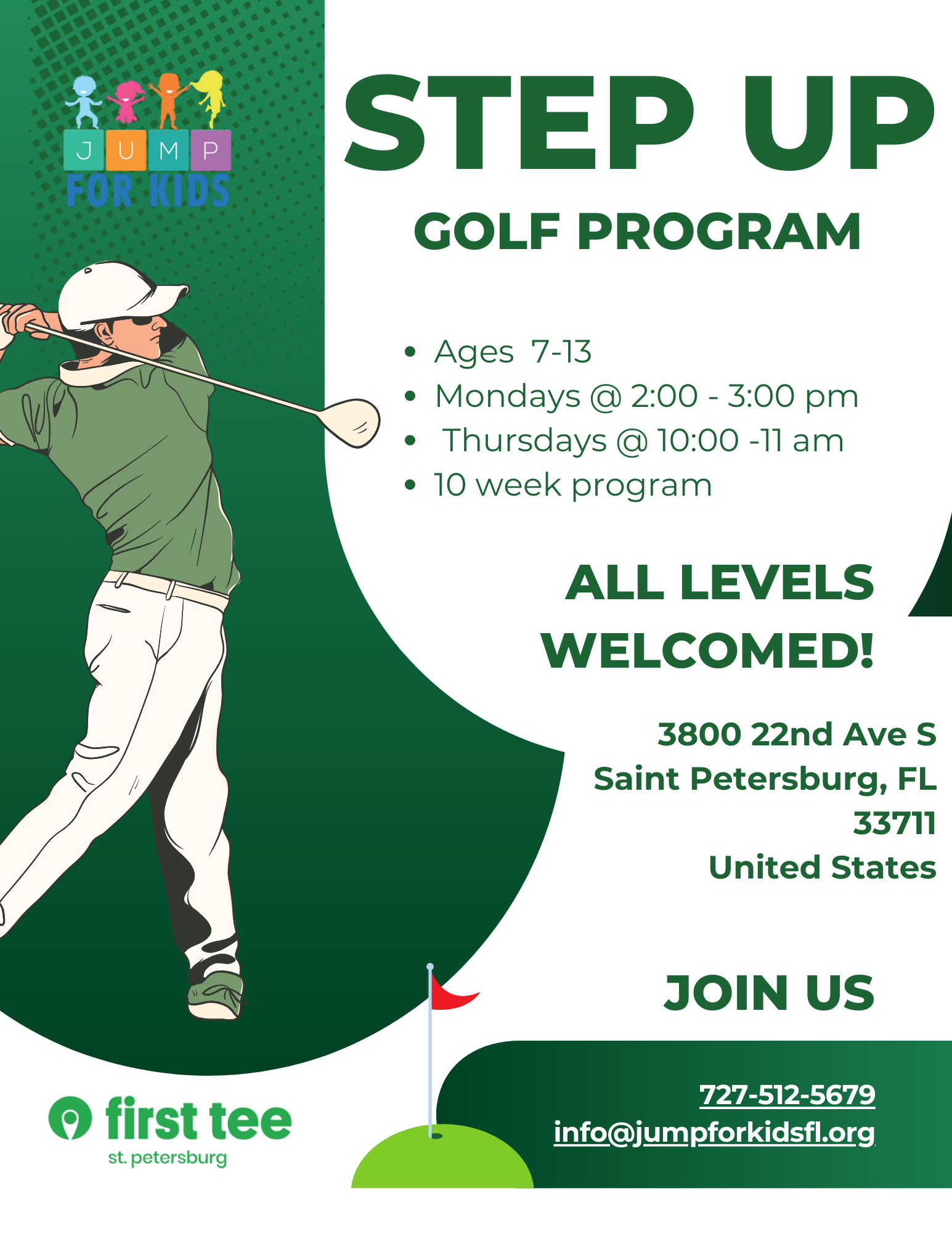 Jump for Kids is offering a Golfing program, partnered with First Tee and StepUp to offer a unique golfing experience!